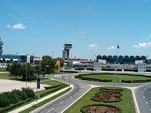 Henri Coandă International Airport ( IATA: OTP, ICAO: LROP), located 16.5 km (10.3 mi) north of the Bucharest city centre, in the town of Otopeni, Ilfov. The airport has one terminal divided into two inter-connected buildings (Departures Hall and Arrivals Hall). The International Departures Hall consists of 36 check-in desks, one finger with 24 gates (14 equipped with jetways), while the Domestic Hall has an extra four gates. Today's Arrivals Hall is the old Otopeni terminal, while the new Departures Hall, including the finger and the airbridges, was built and inaugurated in 1997. An expansion of the finger was opened in March 2011, other expansions of Departure Hall and Arrivals Hall are underway and a new terminal on the east side is in project phase. The airport received 5,069,003 passengers in the first 8 months of 2012.