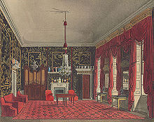 The original early 19th-century interior designs, many of which still survive, included widespread use of brightly coloured scagliola and blue and pink lapis, on the advice of Sir Charles Long. King Edward VII oversaw a partial redecoration in a Belle epoque cream and gold colour scheme.