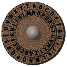 A construction of 2 rotating disks with a Caesar cipher can be used to encrypt or decrypt the code.
