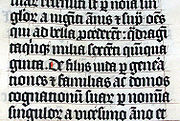 Unlike a typeface, irregularity in the characters' size, style and colors adds meaning to the Greek translation "beautiful letters". The content may be completely illegible, but no less meaningful to a viewer with some empathy for the work on view. Many of the themes and variations of today's contemporary Western calligraphy are found in the pages of The Saint John's Bible. A particularly modern example is The Holy Bible, Timothy Botts Illustrated edition (Tyndale House Publishers 2000), with 360 calligraphic images as well as a calligraphy typeface.