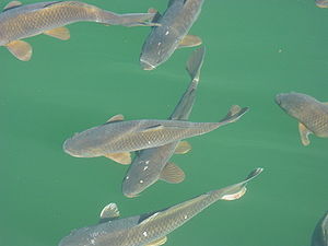 The common carp, along with several other large carps, are one of the most aqua-cultured consumption fishes in the world, produced in the hundreds of thousands of tons annually.