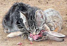 To date, there are few scientific data available to assess the impact of cat predation on prey populations. Even well-fed domestic cats may hunt and kill, mainly catching small mammals, but also birds, amphibians, reptiles, fish and invertebrates. Hunting by domestic cats may be contributing to the decline in the numbers of birds in urban areas, although the importance of this effect remains controversial. In the wild, the introduction of feral cats during human settlement can threaten native species with extinction. In many cases controlling or eliminating the populations of non-native cats can produce a rapid recovery in native animals. However, the ecological role of introduced cats can be more complicated: for example, cats can control the numbers of rats, which also prey on birds' eggs and young, so in some cases eliminating a cat population can actually accelerate the decline of an endangered bird species in the presence of a mesopredator, controlled by cats.