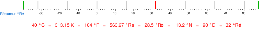 | Fahrenheit | [°F] = [°C] × 9⁄5 + 32 | [°C] = ([°F] − 32) × 5⁄9 |