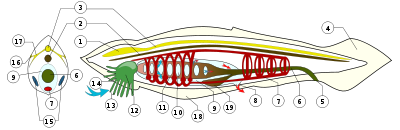 | The X-ray tetra ( Pristella maxillaris) is one of the few chordates with a visible backbone. The spinal cord is housed within its backbone. | |