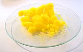 - 4 FeCr2O4 + 8 Na2CO3 + 7 O2 → 8 Na2CrO4 + 2 Fe2O3 + 8 CO2