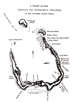 On 1 April 1836, HMS Beagle under Captain Robert FitzRoy arrived to take soundings establishing the profile of the atoll as part of the survey expedition of the Beagle. To the young naturalist Charles Darwin, who was on the ship, the results supported a theory he had developed of how atolls formed. He studied the natural history of the islands and collected specimens. His assistant Syms Covington noted, "an Englishman [he was of course Scottish] and HIS family, with about sixty or seventy mulattos from the Cape of Good Hope, live on one of the islands. Captain Ross, the governor, is now absent at the Cape."