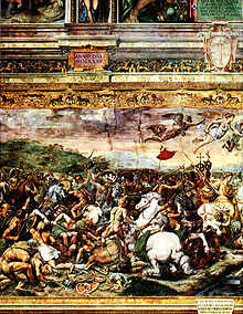 At the approach to the west of the important city of Augusta Taurinorum (Turin, Italy), Constantine met a large force of heavily armed Maxentian cavalry. In the ensuing battle Constantine's army encircled Maxentius' cavalry, flanked them with his own cavalry, and dismounted them with blows from his soldiers' iron-tipped clubs. Constantine's armies emerged victorious. Turin refused to give refuge to Maxentius' retreating forces, opening its gates to Constantine instead. Other cities of the north Italian plain sent Constantine embassies of congratulation for his victory. He moved on to Milan, where he was met with open gates and jubilant rejoicing. Constantine rested his army in Milan until mid-summer 312, when he moved on to Brixia ( Brescia).