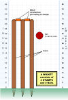 ![]() A bowler bowling to a batsman. The paler strip is the cricket pitch. The two sets of three wooden stumps on the pitch are the wickets. The two white lines are the creases. |