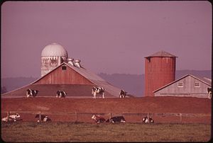Pennsylvania has 8,500 farms with 555,000 dairy cows. Milk produced in Pennsylvania yields an annual revenue of about US$1.5 billion.