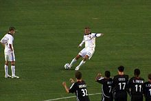 Beckham returned to the pitch the following week, again facing DC United, in the SuperLiga semi-final on 15 August. During this game he had many firsts with the Galaxy; his first start, first yellow card and first game as team captain. He also scored his first goal for the team, from a free kick, and also made his first assist, for Landon Donovan in the second half. These goals gave the team a 2–0 victory, and a place in the North American SuperLiga final versus Pachuca on 29 August.