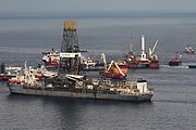 The Deepwater Horizon oil spill (also referred to as the BP oil spill, the Gulf of Mexico oil spill, the BP oil disaster or the Macondo blowout) is an oil spill in the Gulf of Mexico which flowed for three months in 2010. The impact of the spill still continues even after the well was capped. It is the largest accidental marine oil spill in the history of the petroleum industry. The spill stemmed from a sea-floor oil gusher that resulted from the April 20, 2010 Deepwater Horizon explosion. The explosion killed 11 men working on the platform and injured 17 others. On July 15, the leak was stopped by capping the gushing wellhead, after it had released about 4.9 million barrels (780×103 m3), or 205.8 million gallons of crude oil. It was estimated that 53,000 barrels per day (8,400 m3/d) were escaping from the well just before it was capped. It is believed that the daily flow rate diminished over time, starting at about 62,000 barrels per day (9,900 m3/d) and decreasing as the reservoir of hydrocarbons feeding the gusher was gradually depleted. On September 19, the relief well process was successfully completed and the federal government declared the well "effectively dead".