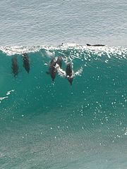 Dolphins occasionally leap above the water surface, and sometimes perform acrobatic figures (e.g. the spinner dolphin). Scientists are not certain about the purpose(s) of the acrobatics. Possibilities include locating schools of fish by looking at above-water signs like feeding birds, communicating with other dolphins, dislodging parasites or simple amusement.