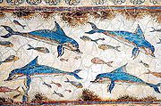 Dolphins are a popular artistic motif, dating back to ancient times. Examples include the Triton Fountain by Bernini and depictions of dolphins in the ruined Minoan palace at Knossos and on Minoan pottery.