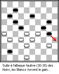 | Frisian draughts | 10×10 | 20 | yes | White | A sequence of capture must give the maximum "value" to the capture, and a king (called a wolf) has a value of less than two men but more than one man. If a sequence with a capturing wolf and a sequence with a capturing man have the same value, the wolf must capture. The main difference with the other games is that the captures can be made diagonally, but also straight forward and sideways. | Played in Netherlands. |