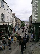 The old commercial section of the city encompasses the peninsula on three sides, following the River Wear. The peninsula was historically surrounded by the castle wall extending from the castle keep and broken by two gatehouses to the north and west of the enclosure. After extensive remodelling and "much beautification" by the Victorians the walls were removed with the exception of the gatehouse which is still standing on The Bailey.