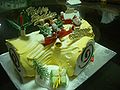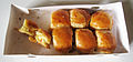Durian fruit is used to flavour a wide variety of sweet edibles such as traditional Malay candy, ice kacang, dodol, lempuk, rose biscuits, and, with a touch of modern innovation, ice cream, milkshakes, mooncakes, Yule logs and cappuccino. Es durian (durian ice cream) is a popular dessert in Indonesia, sold at street side stall in Indonesian cities, especially in Java. Pulut Durian or ketan durian is glutinous rice steamed with coconut milk and served with ripened durian. In Sabah, red durian is fried with onions and chilli and served as a side dish. Red-fleshed durian is traditionally added to sayur, an Indonesian soup made from freshwater fish. Ikan brengkes is fish cooked in a durian-based sauce, traditional in Sumatra. Traditionally Bollen pastry, specialty of Bandung is filled with banana and cheese. Today Bollen durian is also available, it is pastry filled with durian. Dried durian flesh can be made into kripik durian (durian chips).