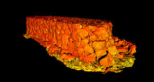 - Red scoria from Puna Pau, a very light red stone used for the pukao and a few moai.