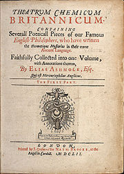 Elias Ashmole ( 23 May 1617 – 18 May 1692), was a celebrated English antiquary, politician, officer of arms, astrologer and student of alchemy. Ashmole supported the royalist side during the English Civil War, and at the restoration of Charles II he was rewarded with several lucrative offices.