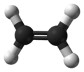 This hydrocarbon has four hydrogen atoms bound to a pair of carbon atoms that are connected by a double bond. All six atoms that comprise ethylene are coplanar. The H-C-H angle is 119°, close to the 120° for ideal sp² hybridized carbon. The molecule is also relatively rigid: rotation about the C-C bond is a high energy process that requires breaking the π-bond.