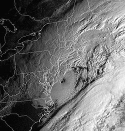 Extratropical storms are areas of low pressure which exist at the boundary of different air masses. Almost all storms found at mid-latitudes are extratropical in nature, including classic North American nor'easters and European windstorms. The most severe of these can have a clear "eye" at the site of lowest barometric pressure, though it is usually surrounded by lower, non-convective clouds and is found near the back end of the storm.