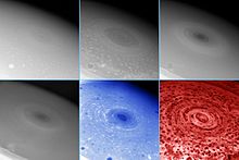 NASA reported in November 2006 that the Cassini spacecraft observed a 'hurricane-like' storm locked to the south pole of Saturn that had a clearly defined eyewall. This observation is particularly notable because eyewall clouds had not previously been seen on any planet other than Earth (including a failure to observe an eyewall in the Great Red Spot of Jupiter by the Galileo spacecraft). In 2007, very large vortices on both poles of Venus were observed by the Venus Express mission of the European Space Agency to have a dipole eye structure.