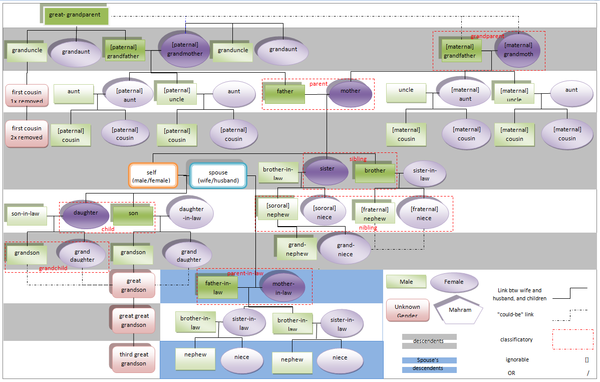 - Nephew: sister's son, brother's son, wife's brother's son, wife's sister's son, husband's brother's son, husband's sister's son