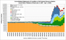NOTE: The Fed balance sheet shown in this article has assets, liabilities and net equity that do not add up correctly. The Fed balance sheet is missing the item "Reserve Balances with Federal Reserve Banks" which would make the figures balance.