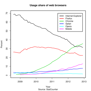 As of October 2012, Firefox has approximately 20% to 24% of worldwide usage share of web browsers, making it the third most used web browser, according to different sources. According to Mozilla, Firefox counts over 450 million users around the world. The browser has had particular success in Indonesia, Germany and Poland, where it is the most popular browser with 65%, 47% and 47% of the market share, respectively.