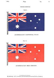 The flag of Australia was chosen in 1901 from entries in a worldwide design competition held following Federation. It was approved by Australian and British authorities over the next few years, although the exact specifications of the flag were changed several times both intentionally and as a result of confusion. The current specifications were published in 1934, and in 1954 the flag became legally recognised as the "Australian National Flag".