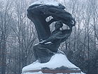 A bronze bust memorializing Chopin sits at Symphony Circle outside Kleinhans Music Hall in Buffalo, New York.