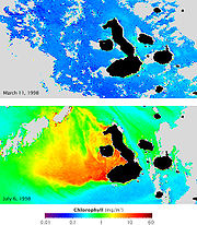There are significant changes in precipitation from one year to another, too. At Charles Darwin Station, the precipitation during March 1969 was 249.0 mm (9.80 in), but during March 1970, it was only 1.2 mm (0.05 in).