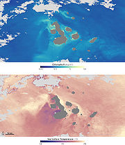 Although located on the Equator, the Humboldt Current brings cold water to the islands, causing frequent drizzles during most of the year. The weather is periodically influenced by the El Niño phenomenon, which brings warmer temperatures and heavy rains.