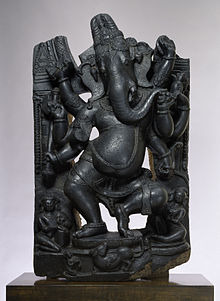 Ganesha is a popular figure in Indian art. Unlike those of some deities, representations of Ganesha show wide variations and distinct patterns changing over time. He may be portrayed standing, dancing, heroically taking action against demons, playing with his family as a boy, sitting down or on an elevated seat, or engaging in a range of contemporary situations.