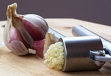 Allium sativum, commonly known as garlic, is a species in the onion genus, Allium. Its close relatives include the onion, shallot, leek, chive, and rakkyo. With a history of human use of over 7,000 years, garlic is native to central Asia, and has long been a staple in the Mediterranean region, as well as a frequent seasoning in Asia, Africa, and Europe. It was known to Ancient Egyptians, and has been used for both culinary and medicinal purposes.