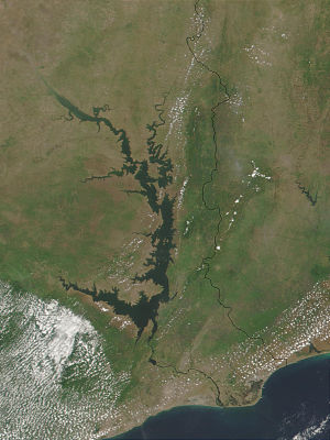Volta Lake, the largest artificial lake in the world, extends from the Akosombo Dam in southeastern Ghana to the town of Yapei, 520 kilometers (323 mi) to the north. The lake generates electricity, provides inland transportation, and is a potentially valuable resource for irrigation and fish farming.