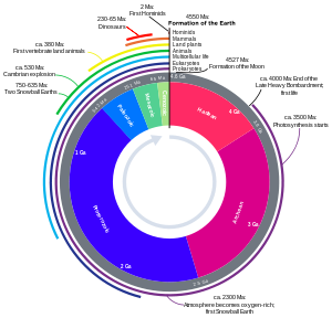 - c. 4 Ga: End of Late Heavy Bombardment, first life