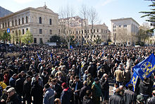 The government came under criticism for its alleged use of excessive force on May 26, 2011 when it dispersed protesters led by Nino Burjanadze, among others, with tear gas and rubber bullets after they refused to clear Rustaveli avenue for an independence day parade despite the expiration of their demonstration permit and despite being offered to choose an alternative venue. While human rights activists maintained that the protests were peaceful, the government pointed out that many protesters were masked and armed with heavy sticks and molotov cocktails. Georgian opposition leader Nino Burjanadze said the accusations of planning a coup were baseless, and that the protesters' actions were legitimate.