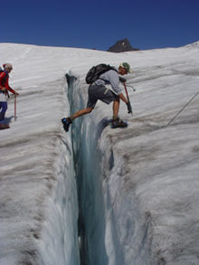 Crevasses make travel over glaciers hazardous, especially when they are hidden by fragile snow bridges.