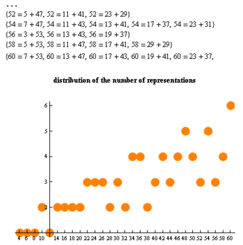Since this quantity goes to infinity as n increases, we expect that every large even integer has not just one representation as the sum of two primes, but in fact has very many such representations.