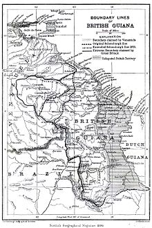 When the British surveyed British Guiana in 1840, they included the entire Cuyuni River basin within the colony. Venezuela did not agree with this as it claimed all lands west of the Essequibo River. In 1898, at Venezuela's request, an international arbitration tribunal was convened, and in 1899 they issued an award giving about 94% of the disputed territory to British Guiana.