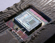 While the earliest microprocessor ICs literally contained only the processor, i.e. the central processing unit, of a computer, their progressive development naturally led to chips containing most or all of the internal electronic parts of a computer. The integrated circuit in the image on the right, for example, an Intel 8742, is an 8-bit microcontroller that includes a CPU running at 12 MHz, 128 bytes of RAM, 2048 bytes of EPROM, and I/O in the same chip.