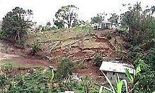Though there are no recorded amounts, satellite-derived rainfall estimates show up to 39 inches (990 mm) of rain falling in the mountainous terrain of the countries. This heavy rainfall resulted in mudslides and flooding, killing a total of 589 people across the island and leaving more than 350.000 homeless.