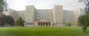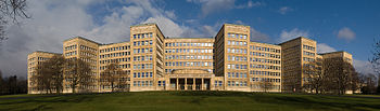 ![]() South façade of the Poelzig Building showing the main entrance |