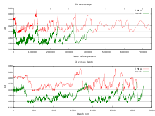 Although the major events recorded in the Vostok, EPICA, NGRIP, and GRIP during the last glacial period are present in all four cores some variation with depth (both shallower and deeper) occur between the Antarctic and Greenland cores.