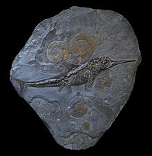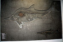 | Mounted fossil of Temnodontosaurus trigonodon, Staatliches Museum für Naturkunde Stuttgart | |