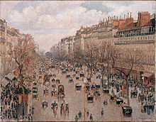 Another major influence was Japanese art prints ( Japonism), which originally came into France as wrapping paper on imported goods. The art of these prints contributed significantly to the "snapshot" angles and unconventional compositions that became characteristic of Impressionism.