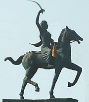 Jhansi was a Maratha-ruled princely state in Bundelkhand. When the Raja of Jhansi died without a biological male heir in 1853, it was annexed to the British Raj by the Governor-General of India under the doctrine of lapse. His widow, Rani Lakshmi Bai, protested against the denial of rights of their adopted son.