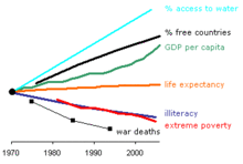 In 2000, United Nations signed the United Nations Millennium Declaration, which includes eight Millennium Development Goals to be achieved by 2015 or 2020. This represented the first time that a holistic strategy to meet the development needs of the world has been established, with measurable targets and defined indicators.