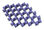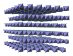 Iron(III) chloride adopts the BiI3 structure, which features octahedral Fe(III) centres interconnected by two-coordinate chloride ligands.