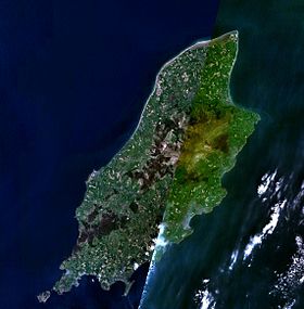 The Isle of Man is located in the middle of the northern Irish Sea, approximately equidistant from the islands of Great Britain and Ireland, within the British Isles. The closest land is southern Scotland. It is 52 kilometres (32 mi) long and, at its widest point, 22 kilometres (14 mi) wide. It has an area of around 572 square kilometres (221 sq mi). Besides the island of Mann itself, the political unit of the Isle of Man includes some nearby small islands: the seasonally inhabited Calf of Man, Chicken Rock on which stands an unmanned lighthouse, St Patrick's Isle and St Michael's Isle. Both of the latter are connected to the mainland by permanent roads/causeways.
